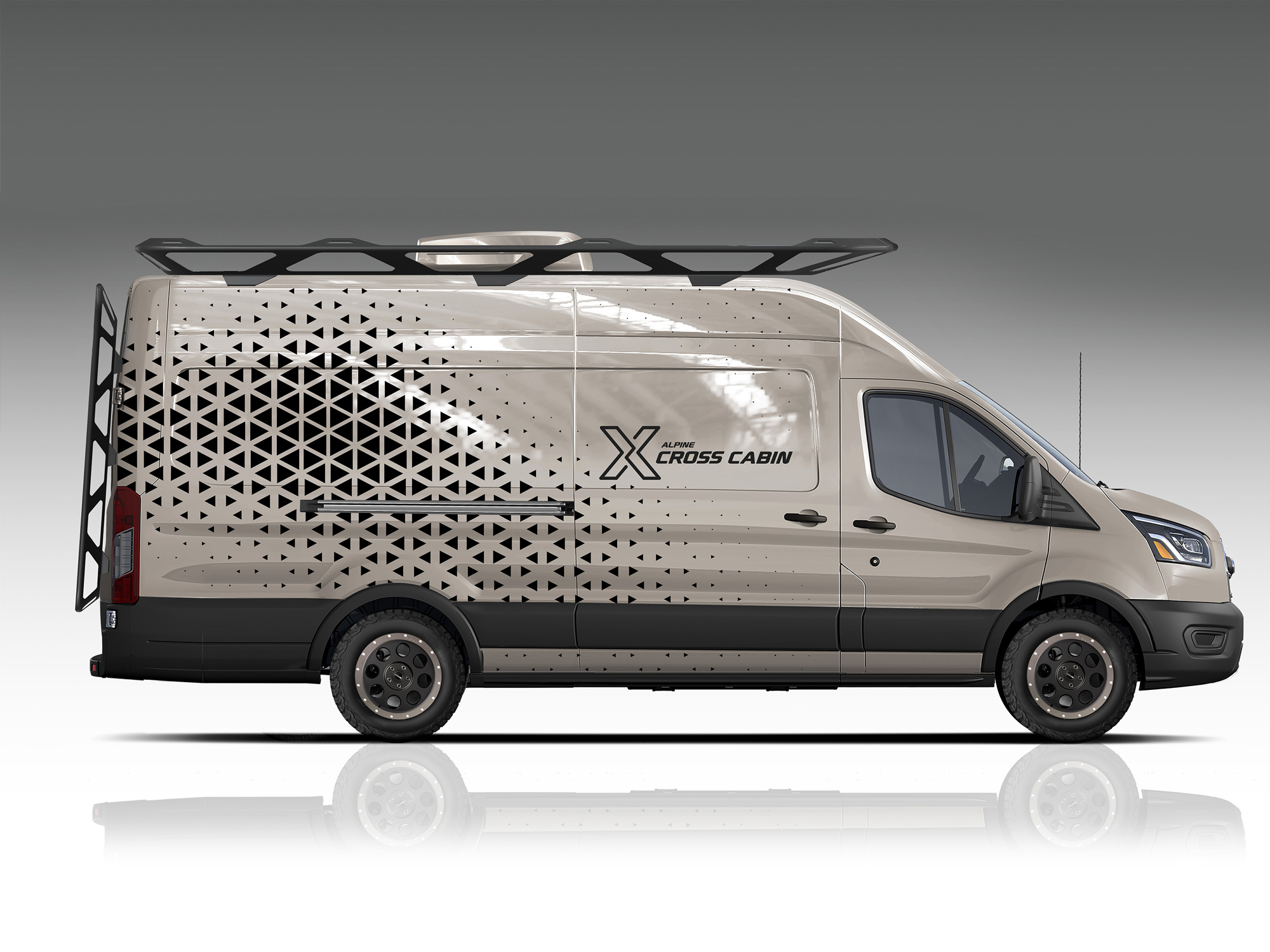 We started to think of a new type of mobility space, that offers both, the comfort of a traditional camper van, yet allows users an optimized ergonomic space for conducting remote work wherever the whim takes them. In other words, a seamless crossover of functionalities for an ideal work-life balance…. hence the Cross Cabin naming,” said Steve Crawford, Director of Alpine’s European Brand Business Division. As a vehicle basis a 6,70m Ford Transit van was selected and transformed into an all-new type of workcation vehicle.